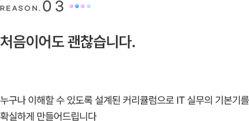 코딩만 배우는 게 아니라 IT가 어떻게 돌아가는지 같이 배우니까 전체 흐름이 보이기 시작했어요.